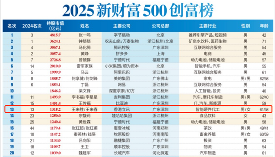 当时,没人会想到这个普通的潮汕女工,会在37年后以1315亿的身家出现在《2025新财富500创富榜》中,位列第13位,成为潮汕女首富。