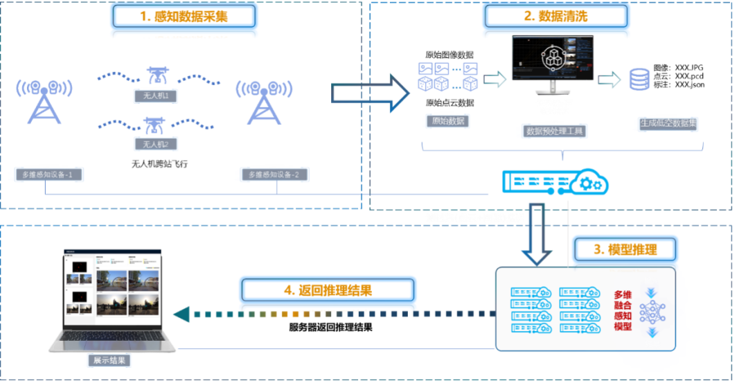 针对无人机起降及航线管控场景中对全天候、高精度、高可靠感知的网络核心需求,中国移动联合华为,联合攻关基于多源融合通感一体架构的核心网原型。该原型可实现基于5G-A通感核心网的低空多源融合高精度感知,支持通感基站、光电摄像头等多类异构感知设备的接入与数据融合处理;同时,该原型支持大小模型协同的感知模型架构及多层级增强机制的感知算法结构,实现智能化感知目标探测,有效解决低空小目标“看不清、看不准、看不全”的行业痛点。
