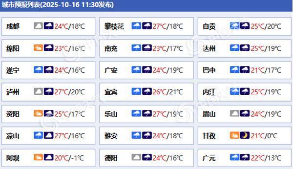 中国天气网讯 今天(10月16日)夜间到后天,四川降雨频繁,其中今夜雨势较强,巴中、达州等地有大到暴雨。近期四川降雨连连,需防范连续降雨可能引发的次生灾害。