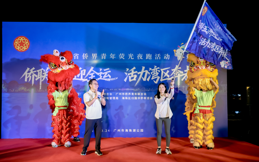 夜幕初垂,广州海珠湖畔荧光点点。活动在荧光装备发放中拉开序幕,侨界青年在原中国田径队运动员、首位夺得世界少年田径锦标赛男子百米冠军的莫有雪带领下进行热身,现场气氛迅速升温。